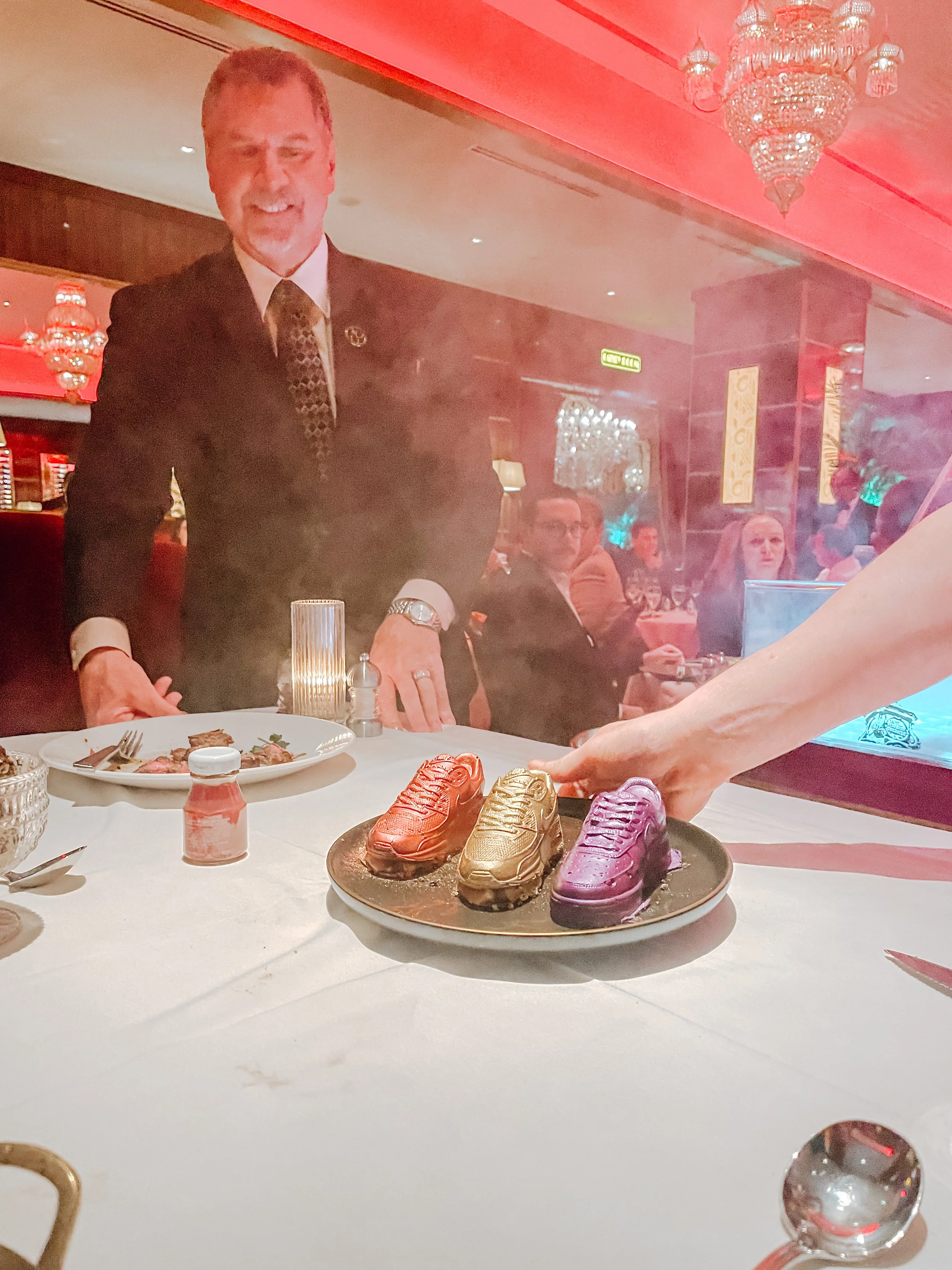 Grayson was sat in Mr. Ruby’s favorite seat, in the red room which is Grayson’s favorite color and was immediately given a JR pin for his suit. He was brought back into the kitchen, to not only meet the chef but pick out his very own steak! He was given a chef’s jacket and then was taken back to see the incredible cakes they make. We enjoyed a beautiful dinner, along with dessert. At the end we were given a framed menu with incredible words of encouragement, love and support of Grayson and his fight.