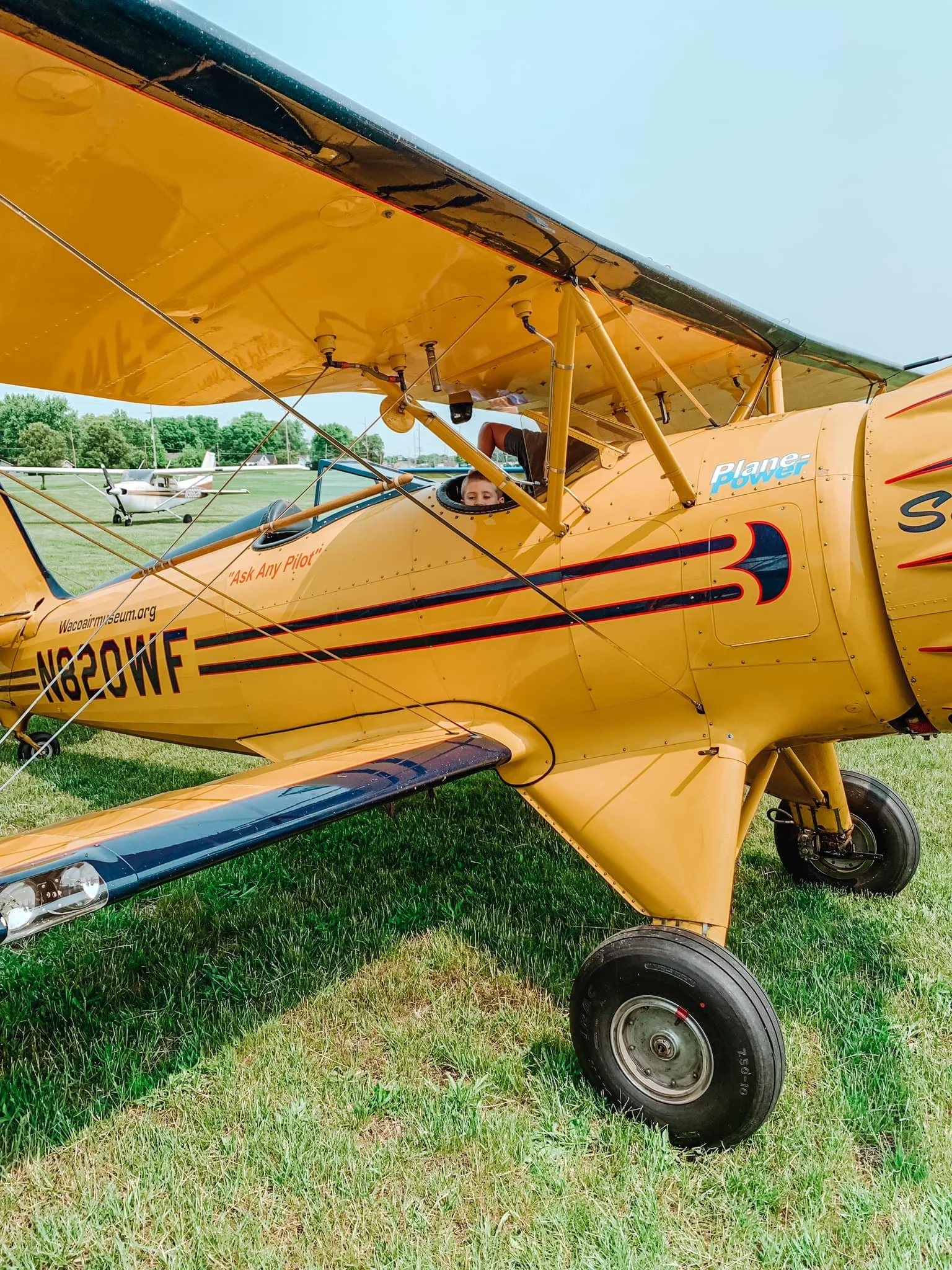 With the help of Nancy at WACO Air Museum in Troy, OH Grayson was able to fly on a biplane named Sunny!